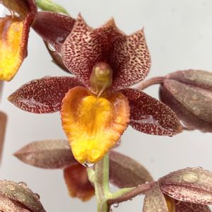 🌸らんまんカタセタム🌸 Ctsm. Ryan Harington (Ctsm.tenebrosum × Ctsm.denticulatum) 6月に咲いた株とは別株で花型、カラーが微妙に違います🧐 ライアンハリングトンは黒花、焦茶、淡橙色、赤茶の花色に斑点が入り橙色、黄茶等の斑点リップがあり😊バリエーションが多い😊 「orchidroots」 オーキッドルーツ その種の起源を調べるのに大変便利で殆どの洋蘭品種の歴代祖先を調べる事がで来ます🧐 写真も投稿出来参加型の検索サイトとして大変人気があります😊 海外のsnsに投稿しているとオーキッドルーツ運営者からルーツへの搭載も希望してきます☺️ 世界中のカタセタム栽培家の花が見れて楽しく励みにもなります😊