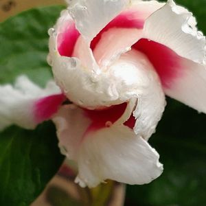さんこうえん オリジナル・ビンカ MIKI カップ咲きがとても可愛いビンカMIKI 温度によって咲き方が変わるそうで 今は花びらが全開する事なく この様にクルクルとカップの様な咲き方です 花びらが少し開いて 中心の赤い色を少しだけ見せた咲き方も可愛いし 今の時期はお花が全開する事なく 終わっていきます