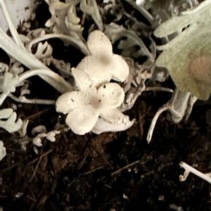 植木にキノコが生えていました。 昼に見た時は普通のキノコの形だったけど、夜に見たら弾けて?お花のような形になっていました。 可愛いけどそっと抜きました。 キノコのいい香りがしました。