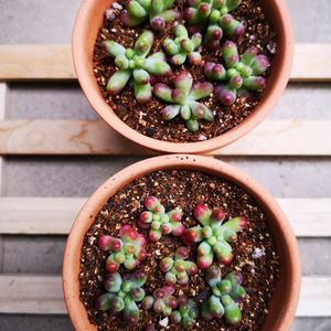 虹の玉さんは既に丼がありますがオーロラさんとレッドベリーさんは一鉢しかないので保険を作りたくて挿し穂と葉挿し、株分けをしました😆👍❤️ これで安心✨😌✨デキルカナ? ベランダの上の方と下の方と違う場所で管理しないと🤗ネ