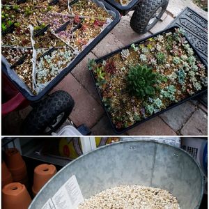 しまったしまったしまくらちよこ 去年作ったセダムコンテナの土が細かすぎて今年のクソ長いクソ梅雨を越せそうにない。 セダムだから多少湿り気味でもええやんねと手元にあるもの使ったのがoh間違い。 明日からチマチマ植え替えるかねー目疲れそ…