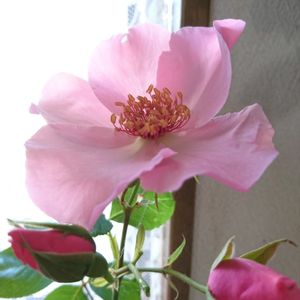 🌹🌹これも、薔薇さんですよ!🌹🌹 こんにちは! お花、菜園、草取りしてきて今よ! ☕タイム………ホッとひと息❤ うちにいる🌹薔薇🌹さんよ まぁ〜〜この前アップしたのは、花びら有りすぎるほどなのに……💦 これは、物足りないくらい😅💦💦💦 一重です。 カットして窓辺に……💓🌹💓 これだけを見てますと…… 可愛いく見えてくる😍))) うふふ🎵……✨🌹✨……… 6月ですね! 今月もよろしくお願いいたします