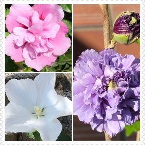 〈 ムクゲ 〉 〜 今日のお花 〜 ⚫︎アオイ科 落葉性低木 別名 ハチス 韓国の国花 花色 白、赤、ピンク、紫、複色 一重、八重、半八重、乱れ咲き バリエーション豊かで 色も咲き方も多様です❣️ 開花期もとても長く 丈夫です (昨年のpic より) ◎ ムクゲとの出会いは 沿道の 真っ白い お花です。 通るたびに 次々と咲き続け 長期間楽しませてくれました❣️ 紫色の花は ずっと欲しかった 花色で 今は 蕾を付けています♪