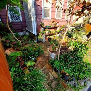 三連窓を隠すように伸びていたシンボルツリーを切ったので、盆栽棚に朝陽が降り注ぎます! 冬の日差しが確保できた分、夏の直射日光を遮光する枝が無くなり、来年の対策を考え中。 オオデマリの後ろにバナナを植えて、その横に先週植えた鳳凰木が在るので、その成長具合で日当たりが変わってくるのが楽しみです。 純和風植物の庭から、一気に多国籍南国🌴庭園に変わっていきそうで、ワクワクしています😆 お金のかかる消費型から、成長型の趣味に興味が変わって、食べ歩きする代わりに、自然を愛でる喜びに目覚めて、身体も健やかになってきました! 相変わらず生まれつき背負ったハンデは治らないけど、生き残り方を植物に教わって、心豊かに暮らしていくことができます。 園芸って、素晴らしい❗