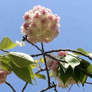 サトザクラ八重咲き🌸関山 フリフリ💕フリルが可愛くて💖✨ 青空とピンクのグラデーションが綺麗( ૣᵕ◡ᵕ ૣ )ੈ