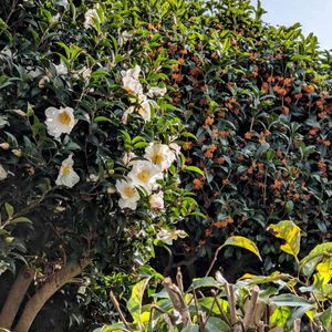 今朝 玄関を開けるとどこからともなく 良い香りが〜(*´꒳`*) 和庭のキンモクセイでした♫♫ 大木になってて両隣もモジャモジャ🌳💦 去年はこんなに香って来なかったし お花も咲いてなかったような… 父が剪定した時期が偶然合ってたのか(*‘ㅁ‘ *)? 左は槇の木だけど右は昔からあるけど 山茶花( ˙꒳˙ )???よく分かりません… 日に日に季節は秋らしくなって行きます…