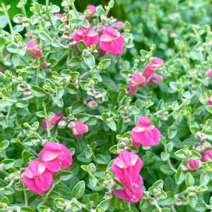 今日は良いお天気☀️ スクラテリアチェリースカルキャップ いつになっても名前が覚えられませんが😂 小さくて可愛いお花が咲き始めました🩷 背が低くこんもりと茂ってくれて 花壇の手前にちょうど良く☺️ 暑さにも強いので、これから沢山 咲いてくれそうです😊