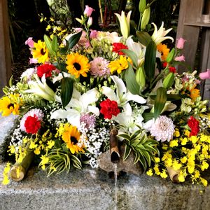 いつもの神社の花手水舎 新年2回目のお花チェンジ🌸 めちゃ華やかです❣️