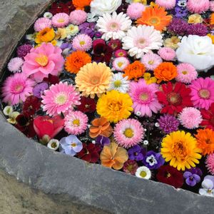 ハート♥️の花手水❣️ って、無理やり⁉️見えますよね💦