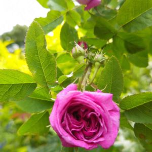 オールドローズ・マポンクチュエ咲きだしました。雨にやられて開きが悪いです。ても香りは良いですよ。