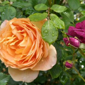 おはようございます。雨でも頑張ってます。イングリッシュローズ・ワイルド・イブ