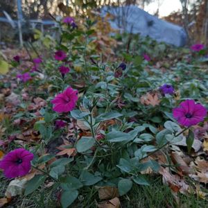 夕暮れサフィニアだけが咲いてる庭です