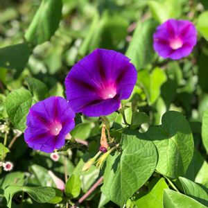 27日にUPしたガガイモと同じ草むらには ノアサガオ(と思われます)も 咲いています。 窓辺で緑のカーテンにもなっているし 道端のあちこちに野生化しているものも 多々あります。 青紫色が多いですが時々ピンクも 見かけます。 ノアサガオは熱帯から亜熱帯地域に 自生するつる性の多年草、 時々、話題に上がるように 最近の気候変動で日本は亜熱帯に なってしまったのでしょうか。