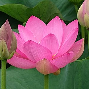 こちら2000年前の種から蘇生したハスだそうです。 広げた両手からはみ出るほどの大きさです。 観音様の足元に咲いてるアレみたいです。