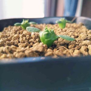 【成長記録用】 壁]ω`)コンチワー 昨年秋蒔きのユーフォルビア・オベサさんですよ ‹‹\(´ω` )/››‹‹\( ´)/››‹‹\( ´ω`)/›› 5粒購入して発芽率100%、やはり種は鮮度が大切ですよ (・∀・) 双葉枯れたら植え替え予定です |´∀`)