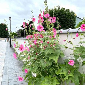 タチアオイ(立葵) 別名 ホリホック 原産国 中国西部 白い塀に映えるタチアオイ 青空ならもっと綺麗だっただろうなぁ。残念 昔はよく農家の庭先に植えられていたそうです。 川越散策