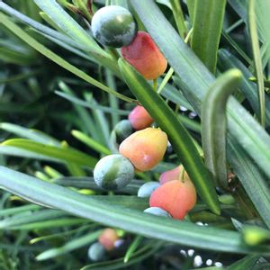 イヌマキ実が色づいて来ました、不思議⁉️ 赤い…花托🧡 青い…実💚