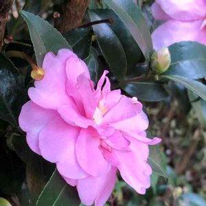 裏庭の山茶花 咲き始めました。 この色が元気は気持ちを明るくしてくれます🌸😊