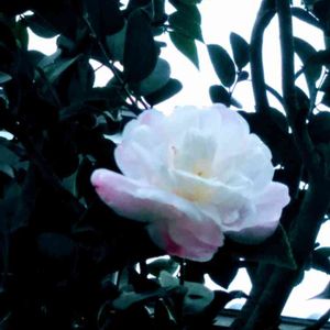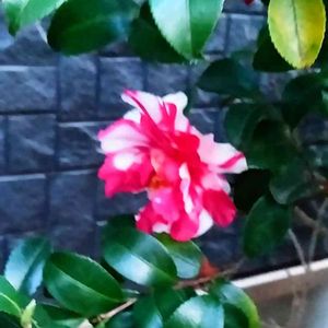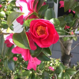 スーパーの帰り道の、 マンションの垣根の椿です。