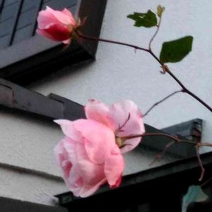 水元公園を出た所の、お宅の垣根から、首を飛び出してる、可愛い薔薇🌹が有りました。