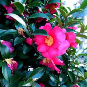 おはようございます🍀 我が家には、庭が全く無いので ご近所でパチリ綺麗に咲いています🌺🌺 これは山茶花?椿? 山茶花だと思っているのですが・・・・・ 季節が季節だけに迷っています😔 花後のお掃除が大変なんだって、何人もの方の投稿拝見しました😥 ご苦労さまです。 いつも綺麗なお花をありがとうございます🌸🌼🌸 今日も一日普通の日が過ごせますように🙏