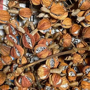 アメちゃんみたいなふくろの中にタネがぎっしり詰まってます。こんな植物初めて見ました‼︎