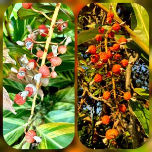 今の時期、沖縄の野山、畑、公園 等の月桃の実が色づいています🌾🧡