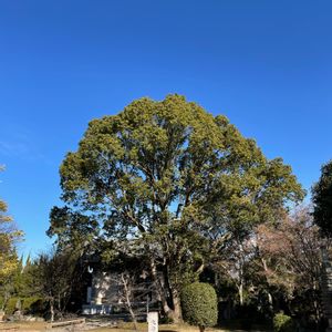 大安寺にお詣り。 きょうは風もなくて 暖かく感じます☺️ 青空に 大きな楠が映えてます✨