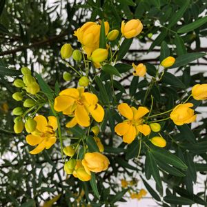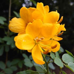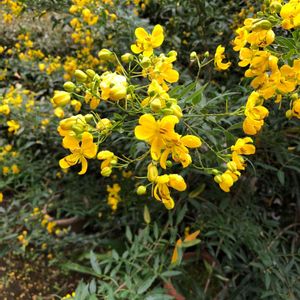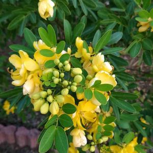 カッシア 別名 ハナセンナ アンデスの乙女 マメ科 センナ属 黄色いビタミンカラーのお花💛🌿 夜にはオジギソウやネムノキのように葉を閉じます。