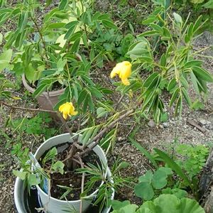 ハナセンナが咲き出しました.園芸店では「アンデスの乙女」という名のほうがポピュラーです.ハナセンナは2鉢あって,こちらは挿し木で増やしたほうです.親木はまだ咲いていません. 撮影 Oct. 14, 2019