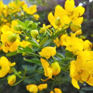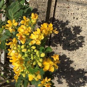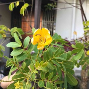 こんばんは~ 小さな苗木だったのが50cmぐらいまで伸びて やっと蕾をつけ始め やっとひとつ咲きました~🌼*・✨ でもね~私·····名前を忘れちゃいましたぁ~😂😝 navyさんから モクセンナ?→葉先は丸い ハナセンナ?→葉先は尖って小葉が細長い コバノセンナ?モクセンナを小さくした様な葉 かものアドバイス頂いて 調べたら葉っぱでわかりました♡🍀 navyさん助かります♡ ありがとうございます🙏💭💗✨