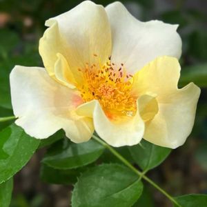 おはようございます☔️ 久しぶりの雨 涼しい朝です😊 今朝のお花は 庭のバラ🌹 黄色系の2種💛 1 バビロンアイズ 目玉がはっきりしなくて 白と黄色のグラデーションになっています💛🤍 これも優しくて涼しげ✨ 2 黄色のつるバラ💛 高い位置で ひっそり咲いています