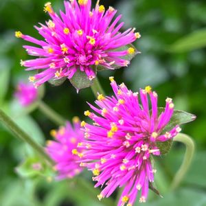 おはようございます☁️ 今朝のお花は ツンツン筒状の花びらが可愛いお花 2種 1 千日紅 ファイヤーワークス🎇 だいぶお花が増えてきました🩷 2,3 ルドベキア ヘンリーアイラーズ 🌼 毎年咲いてくれる可愛いお花⸜(*˙꒳˙*)⸝