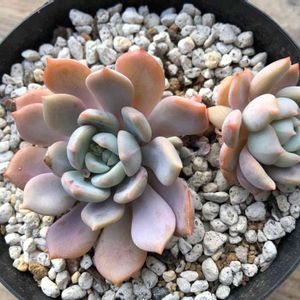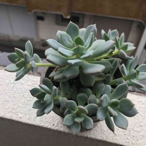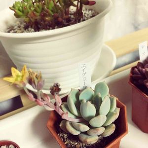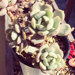白牡丹の葉挿しです。 隅っこにはロゲルシー少々。 こういう適当な鉢ほど元気に育ってるのも、多肉あるあるですね😅 すみません😣💦⤵️ 白牡丹は間違いでした❗ タグを確認したらエイグリーワンでした❗🙏 てっきり白牡丹だと思い込んでましたが、白牡丹の葉挿し鉢は別に有りました😓 でも、似てますよね?😅