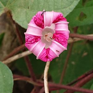 ご存知、朝顔ですが、朝早すぎて開いてませんでした。隣のピンクちゃんは満開ですね🎵。