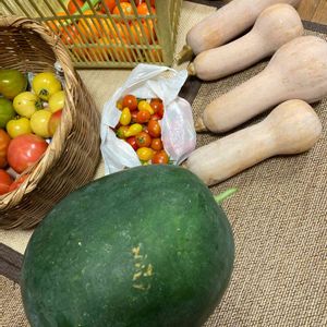 2年ぶりに収穫の網干メロンと今年初収穫のバターナッツ。相変わらず、網干メロンは収穫時期がよく分かりません…。