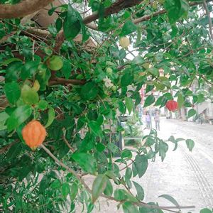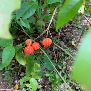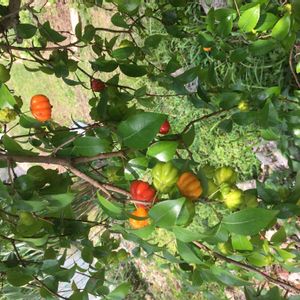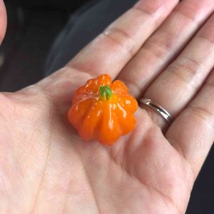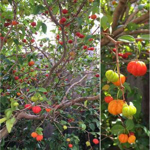 😊ピタンガです。 小ちゃくて🎃カボチャみたいな実 が可愛らしくて💕パシャリ アセロラに似た 果実です。食べてみると酸味と 後味が❓なんだろう❓❓ 😊ジャムや果実酒にするらしいです。
