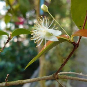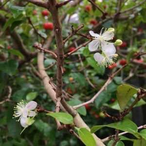 ピタンガの花。 実は赤いけど花は白なんだ🤔 追記 見てくださった方よりこの植物はピタンガと判明しました😅 認識不足ですみません。