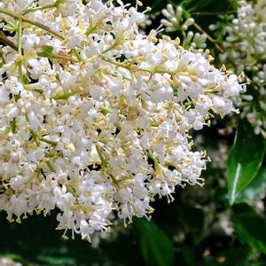 おはようございます😃 5月28日に撮ったものです。 ネズミモチの花です。 可哀想な名前が付けられてしまいました。 黒い実の形から付けられたようです。😅 しかし、小さな花がたくさん集まってできる花房は甘い香りに包まれます。 昔は生垣によく使われていました。 最近、あまり見かけません。 香りに誘われるのか、たくさんの虫達が集まります。 コミノネズミモチを投稿しましたが、私はこちらの方が葉っぱと花のバランスが好きです。😘