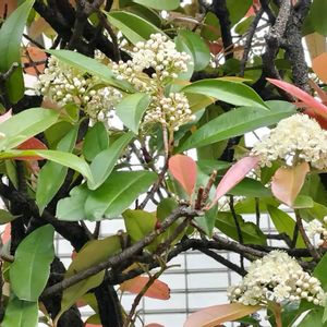 ネズミモチだっけかな? 実生で8年ぐらい育ててきて去年、初開花しました。 それが関係してるのか、いないのか今年はなんだか葉の色が赤みがかっている。 今年はまだ、そこまで寒くないし、普段より濃い気がするけど。 まぁ、どちらでも良いですけど。 去年、枝が増えたから少し春前に剪定しようかな?