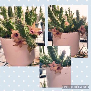 おはようございます😃 一斉紹介(149)です〜❗️😄 我が家のガガ様達❣️🥰 キョウチクトウ科 フェルニア属 夏型、アフリカ〜アラビア半島等に50種ほどが報告される、ガガイモ達❗️😄 ⭐️ピンクアイ(397) Huernia cv "Pinkeye"❗️ 今年、花をよく咲かせくれる子、間も無く開花、二つの花が観れるかなぁ❗️🥰 ⭐️修羅道Hyb(195) Huernia macrocarpa hyb❗️ 柔らかい刺が特徴的な子、お花はまだ咲いてません❗️😅 ⭐️オクルタ(398) Huernia oclata❗️ "オックルタ" "オクラータ"とも。 可愛い花を咲かせてくれた子、少しガリガリ、これで良いのかなぁ❓🙄