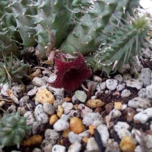 フェルニア属 『 修羅道 』マクロガルパ Huernia macrocarpa ガガイモ開花第2号 修羅道ちゃん窮屈そうに咲いた🌸 冬の間この子は比較的強そうに見えた😊💕 そして、よく増える😁 ニョロニョロいい感じ☺️ 昨日はノンストップ仕事だったので、ヘトヘトに⤵︎😣😣😣⤵︎ 今から皆さんのところ伺います✨😊