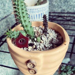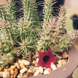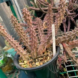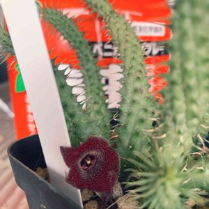 おはようございます😃 ◯ルカリで ポチっとした子②です😄 スタペリアンサス属 ⭐️雷角(400) Stapelianthus madegascariensis❗️ "タツノオトシゴ"とも。 肌の色が タツノオトシゴっぽい❓🙄 フェルニア属 ⭐️ノウフィッシー(401) Huernia ? 原種名が出て来ない⁉️🙄 ⭐️修羅道(195) Huernia macrocarpa❗️ 我が家の子より 綺麗な緑色❗️🤗 我が家の子は 日焼けしてる❓🙄 ⭐️名無し⁉️ Huernia❓ おまけについていた子、お名前は❓🙄