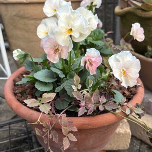 ビオラの寄せ植え❁⃘*.゚先日行った楽しい園芸屋さん巡りで、出会えたビオラ。ウエタさんの試作品で、どれも可愛すぎて、苗の前でどれにしようか悩んだ。悩みすぎたけど、そんな時間もいい。とても充実感! 夏を乗り越え増えたセリフラミンゴと共に寄せ植え。 ビオラはもう少しピンクだったけど、また変わってくるかな、これからの生長が楽しみ~。