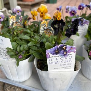 ビオラ寄せ植え❁⃘*.゚ 先日行った花遊庭(3枚目)で、フロステッドフレームを使った寄せ植えみて、色合いを真似してみました! 同じ色を合わせていくと、しっくり!寄せ植えしやすい。 濃い紫のももか(桐生ファーム)は、花屋さんに入った時のようないい香り~。 リナリアの透明感のある花は、違ったフォルムですき! 後ろの方には、爆咲するだろうふるふるフリル(タキイ)。 馴染んでくると、どうなるかな、毎日が楽しみ。