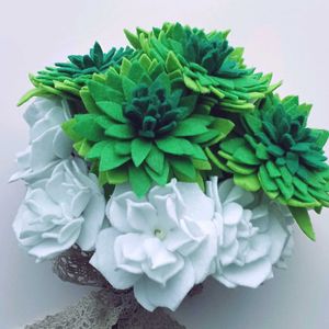 フェルトのダリアさんと クチナシさん 出来ました 🤍💚‘٩꒰。•◡•。꒱۶’💚🤍