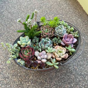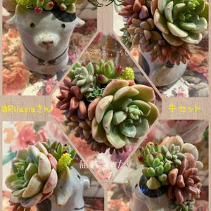 @Rilasiaさんの牛さんセット❣️ 寄植えしました〜。 斜めに穴が空いてるので、何度もポロポロ崩れて5回目にもうダメだと、とうとうネルソルを使って植えました。 大きな苗をせっかく送って下さったから、どうしても牛さんに植込みたくて(笑)