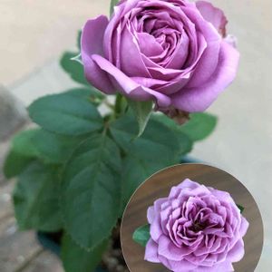こんにちは〜🎶 6月に挿し木したバラに蕾がつきましたが、 何のバラの挿し木か分からなくなってしまったため、 咲かせてみました。 すると、写真の様な花が咲きました。 右下の丸い写真は、カットした次の日に もう少し開いた花です。 カインダ・ブルーか、ノヴァーリスだと思うのですが… 上の花はカインダブルーで、 下の方はノヴァーリスに似ている様な🥺 皆さんどっちだと思いますか?😆