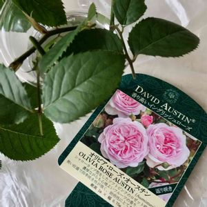 またお隣さんにバラの挿し穂をいただきました😊 これまでいつも、種類が分からないと言われてたのですが、今回は、ラベルやパンフレットをとっていたそうです。 オリビア・ローズ・オースチン、よつ葉さんで5000円の大苗でした。これは大事に育てねば😤💪✨✨🌱
