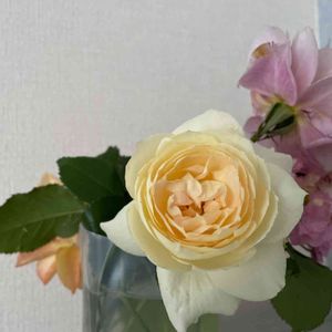 庭で咲いたミニバラ🌹 どこかクリームみたいな薔薇が好きです